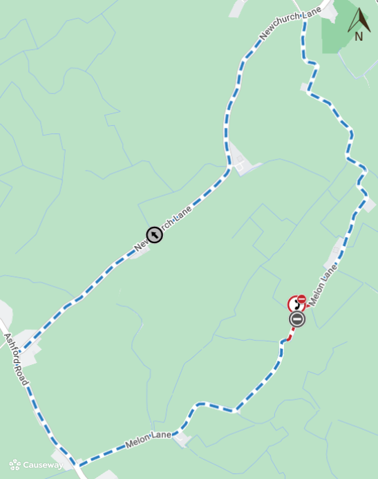 The alternative route for any through traffic is via Melon Lane, Ashford Road, Newchurch Lane and vice versa.